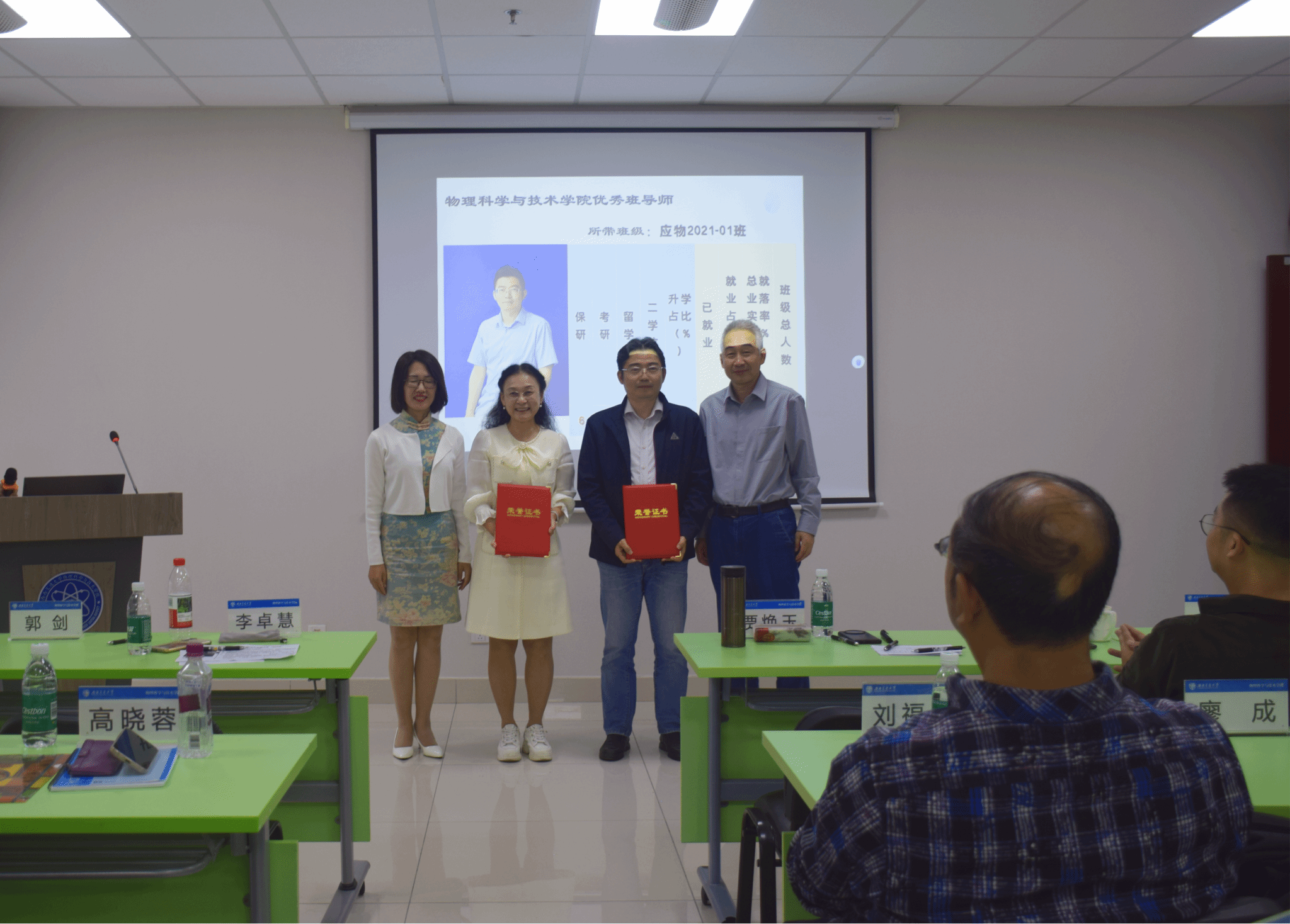 表彰会上,郭剑老师介绍了学院“优秀班导师”评选目的、评选标准并宣读了学院表彰决定,谢东老师、高晓蓉老师获评学院2025年“优秀班导师”。李卓慧书记、贾焕玉院长为获奖教师颁发了荣誉证书。