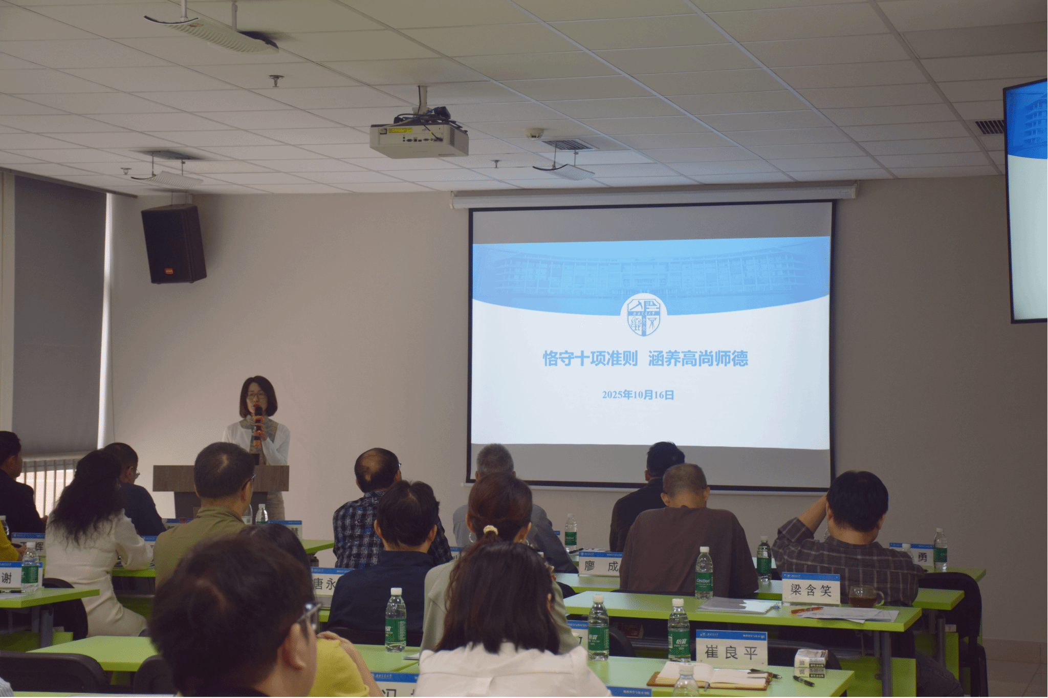 李卓慧书记领学了师德师风建设相关文件精神,通过解读文件内容,让教师们进一步明确师德底线和行为规范;同时,结合近期高校发生的违反师德师风典型案例开展师德师风警示教育,通过案例分析,引导学院全体教职工要以案为鉴、以案明纪、以案为戒,坚守师德底线。