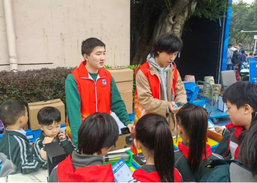 在活动现场,yl23411集团官网讲解团队精心准备五个趣味物理小实验,通过讲解和互动相结合的形式,将抽象的物理原理转化为触手可及的奇妙现象,寓教于乐,点燃学生科学热情。“圆锥自动从下往上滚!”,“乒乓球能穿墙而过?”奇妙的物理现象让同学们倍感震惊,同时也提出了一连串的问题。志愿者们通过先引导思考后演示讲解的方式,让同学们的学习习惯从被动的接受知识,转向主动的去探索,思考,去深究现象背后的原理。愿这次“先思考、后解惑”的科学初体验,能让同学们学会像科学家一样追问与求证,让探索的种子在此刻萌发,引领他们走向更广阔的未来。