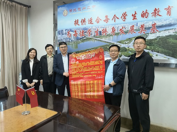 5月9日,学校党委副书记敖廷华、学院党委书记蔡哲斌、教学副院长杜何为、党委副书记汪萍、招生专干顾志翔一行前往随州市教育局开展调研,并赴随州市第一高级中学、随州市第二高级中学、随州市曾都区一中、随县一中、欧阳修中学开展2022年招生宣传走访活动。