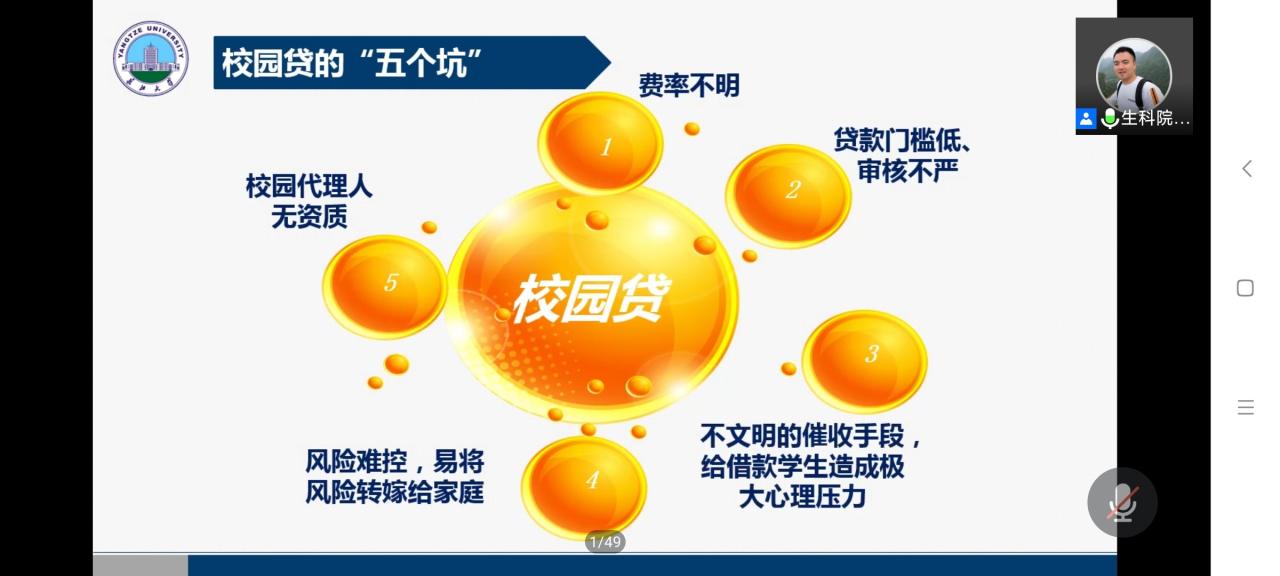 顾老师也对全体研究生进行了节假日常安全提醒,包括对火灾的防控,疫情期间要戴好口罩不要到人群聚集处,节假出行要注意交通安全以及加强对艾滋病的预防。最后,老师还劝解各位不要饮酒,并用现实的例子展现了其危害性。