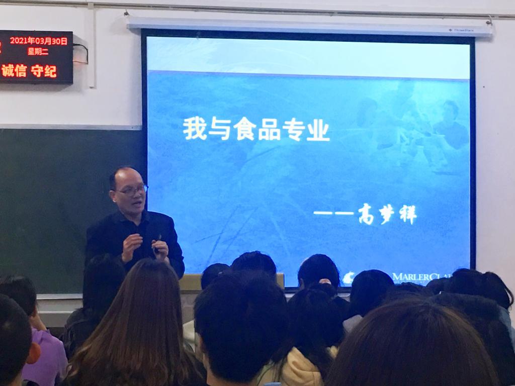 (通讯员:白旭红/文 周小琳/摄)为顺利开展2020级本科生专业分流工作,我院于3月30日晚七点至九点在5教103与602教室分别召开生物科学类与食品科学类专业学科介绍,讲座分别邀请了学院院长高梦祥、副院长杜何为担任主讲人,年级辅导员范昆琨老师主持讲座,全体2020级学生参加了讲座。
