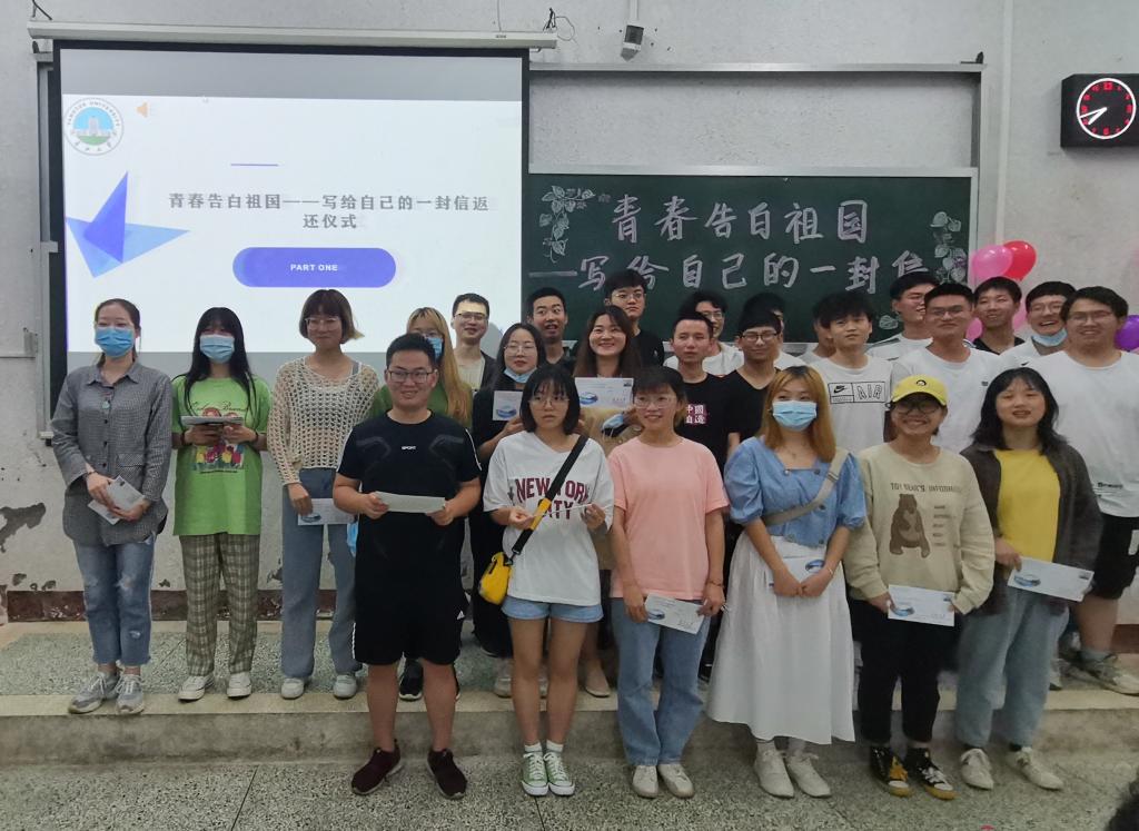 为庆祝建党100周年,培养与厚植同学们的担当精神和爱国情怀,坚定实现“中国梦”的信心与信念,5月28日,生命科学学院组织2019级本科生在5教103教室举行“青春告白祖国——写给自己的一封信”返还仪式,院团委书记范昆琨、研究生辅导员顾志翔参加此次活动,兼职辅导员段奥主持活动。