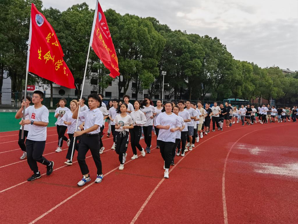 最后经济管理学院的贺雄老师为我院授旗,汪书记代表学院接受授旗。院长高梦祥教授宣布“千班唱红歌,万人健康跑”开跑,全体学生围绕操场齐跑两圈。
