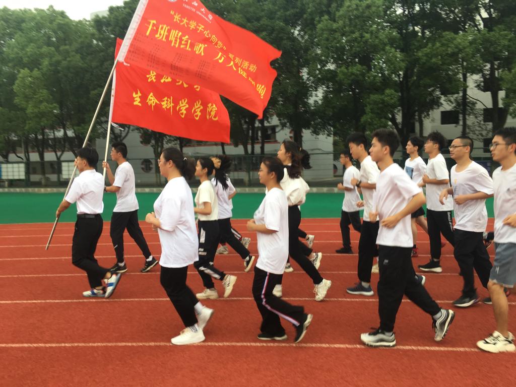 (通讯员 贾仕芳/文 白旭红/摄)6月21日早上6:45,生命科学学院于西校区操场举行了“千班唱红歌,万人健康跑”活动暨升旗仪式,党委书记蔡哲斌、院长高梦祥、副院长孙卫青、杜何为、党委副书记汪萍、全体辅导员及2019级、2020级全体在校学生参加了此次活动。