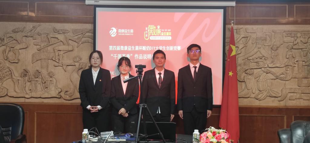 决赛组的参赛选手分别来自包括我校在内的13所高校,决赛采用PPT展演+评委点评互动的形式,评选出一等奖1名、二等奖3名、三等奖5名。其中,我院“千莲茶香”团队从摘要、原辅料及生产过程、营养价值、包装设计及创新点四个部分进行了精彩的答辩,在保证营养和口感的前提下,研制出一款内包装创新的茶香型酸奶。在13所高校、22个作品中成功脱颖而出,取得较好的成绩。