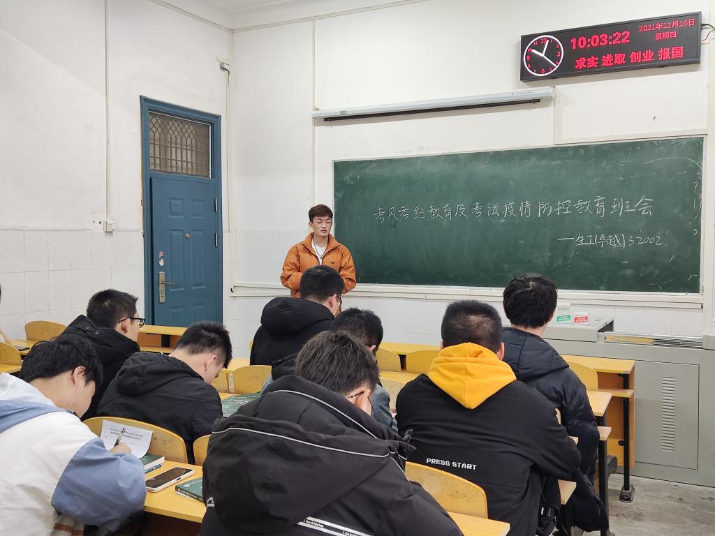 为了加强考风考纪建设,为学生营造良好的考试环境,保证大学生英语四六级考试的顺利进行,2021年12月中旬,生命科学学院组织各年级分班级召开了“考风考纪宣传教育”主题会议。会议由各班班长主持,全体同学参加。