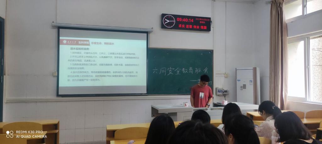在班会上,各班主任和班长首先向同学们介绍了目前全国疫情状况,强调当前疫情形势仍然严峻,同学们不可掉以轻心,要严格遵守学校疫情防控规定,在日常生活中加强个人防护,切实做到“非必要不出校,非必要不出市”。此外,暑假将近,同学们的个人安全问题不容忽视,各班主任从宿舍用电安全到饮食健康安全,从防溺水到防诈骗,全面透彻的向同学们强调生命安全的重要性,以及遇到危险时的紧急防护措施。