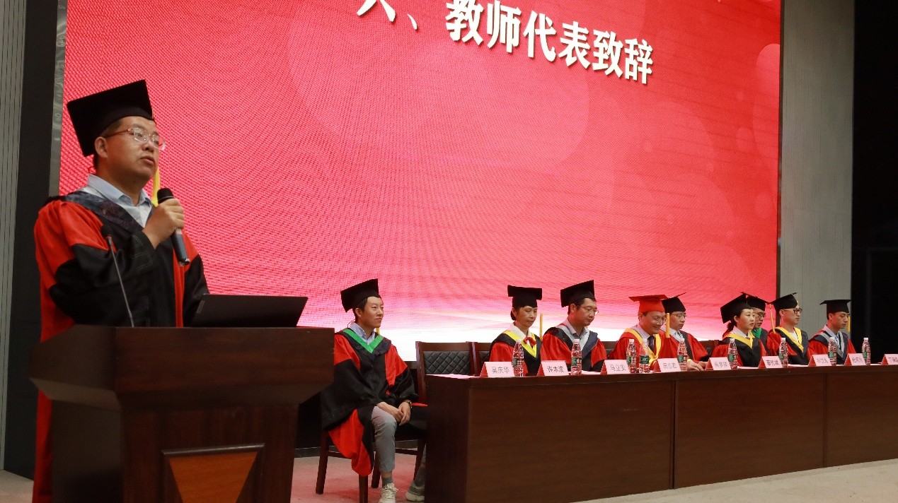 研究生毕业生代表杨坤与大家分享了自己在研究生期间的体会和感受,号召大家以坚定远大的理想励志前行,同时也祝愿了同学们鹏程万里、前程似锦。