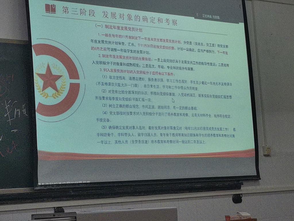 辅导员范昆琨老师介绍了学院党组织的基本概况,并从“入党申请人-入党积极分子-发展对象-预备党员-正式党员”五个阶段向新生们介绍了发展党员的具体流程、入党积极分子和发展对象的教育与考察等内容,解答了新生对申请入党的疑问,并对入党申请书和思想汇报的撰写要求进行了详细的讲解。她鼓励同学们要树立共产主义远大理想,坚定中国特色社会主义信念,大学期间严格要求自己,踊跃递交入党申请书,尽快从思想上、行动上向党组织靠拢,争取早日成为一名光荣的中国共产党党员。