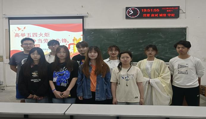 5月13日晚上7点,我院在西校区6教105教室举办了“高举五四火炬,争当劳动先锋”主题青年学习会。本次青年学习会共邀请了两位优秀学生代表主讲,二人结合自身经验,从学习、科研、社会实践等方面进行分享,启发同学们作为新时代青年该如何勇担使命,以实际行动践行青春誓言。
