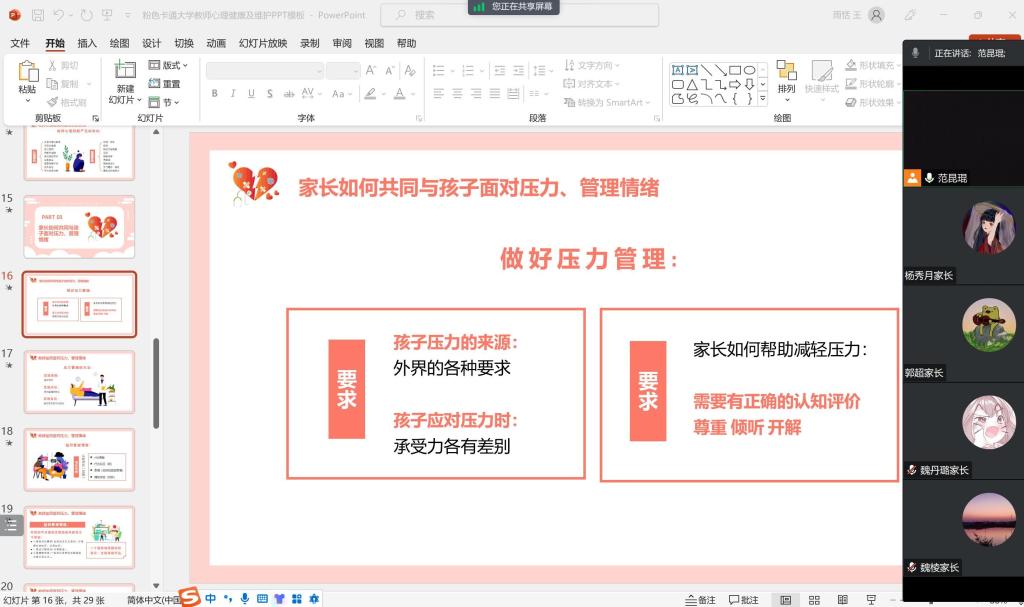 621日至23日,各年级辅导员集中召开了线上家长会,同学生家长一道学习由湖北高校心理健康专家服务队打造的专业心理微课,探讨学生中的常见心理问题,引导家长树立正确的心理健康教育观念,为全面关注学生身心健康发展,充分发挥家庭育人重要作用,形成家校共育合力。