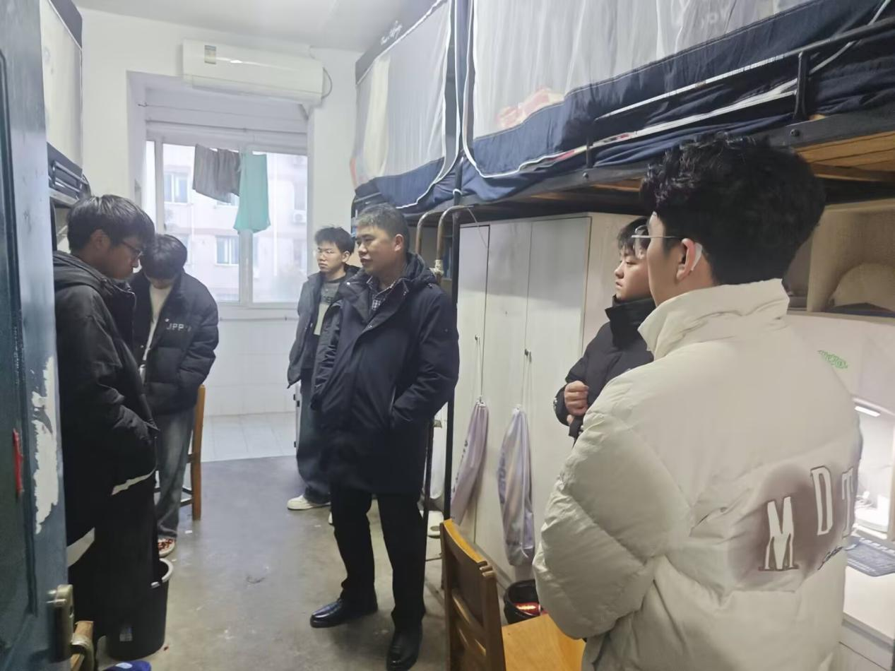 走进学生宿舍,倾听需求送关怀。开学首日,学院领导带队走访河滨公寓2栋、3栋学生宿舍细致查看宿舍卫生、公共区域设施安全,并围绕学业规划、生活需求等话题与学生展开交流。在2024级本科生宿舍,杜院长关切询问学生“寒假返乡是否顺利”“新学期选修课是否存在困难”。