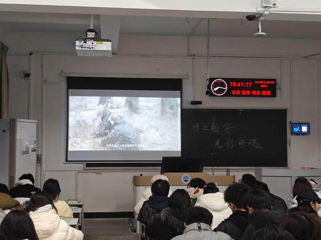 3月5日晚,学院在西校区7号教学楼204、205、207教室同步开展“‘锋’火永续,光影传魂”观影活动。200余名学生通过《雷锋的微笑》重温雷锋故事,从22岁青年战士的成长轨迹中,感悟全心全意为人民服务的精神内核。“电影里雷锋补袜子、捐款的细节让我看到奉献精神的生动注脚。”生科32402班王晓彤在交流环节分享道。