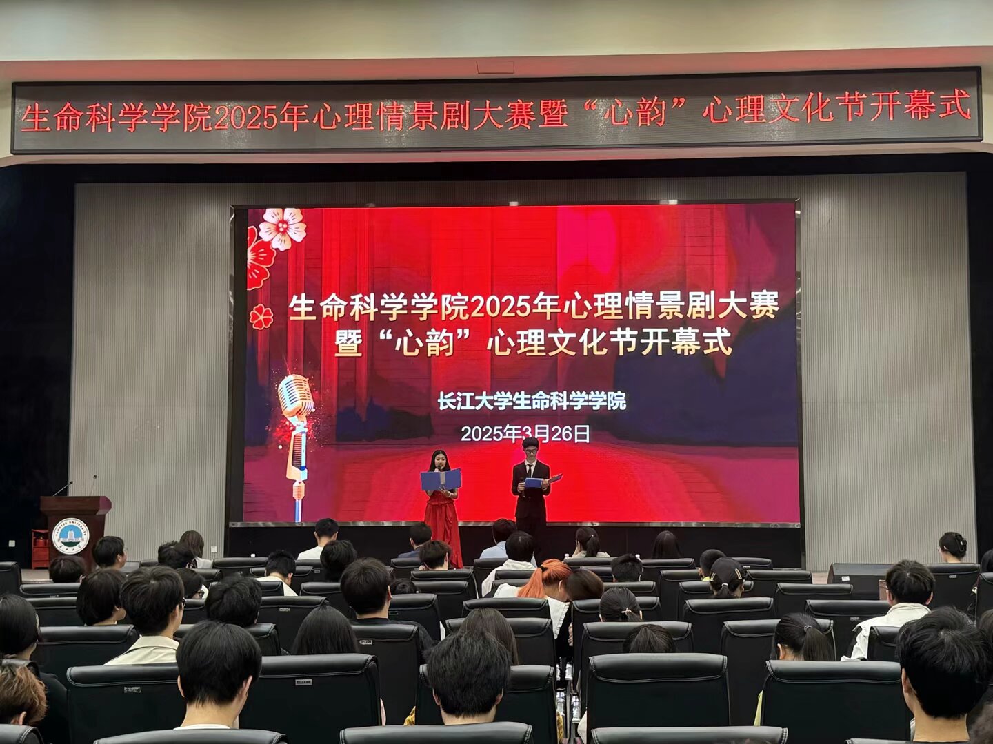 (通讯员:朱翠玲)心海导航,剧演人生。3月26日晚,生命科学学院2025年心理情景剧大赛暨“心韵”心理文化节开幕式在西校区1058报告厅隆重举行。学院党委副书记万波、全体辅导员和各年级学生代表参加活动。