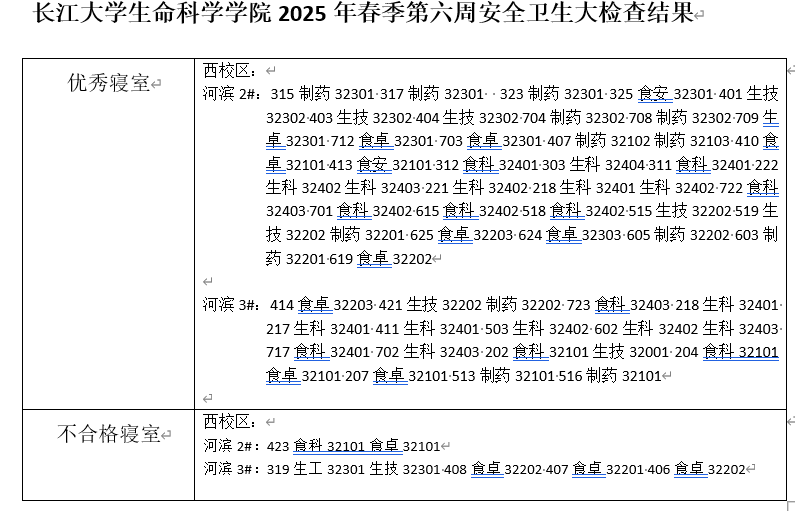 yl23411集团官网2025春季学期第六周寝室卫生大检查结果