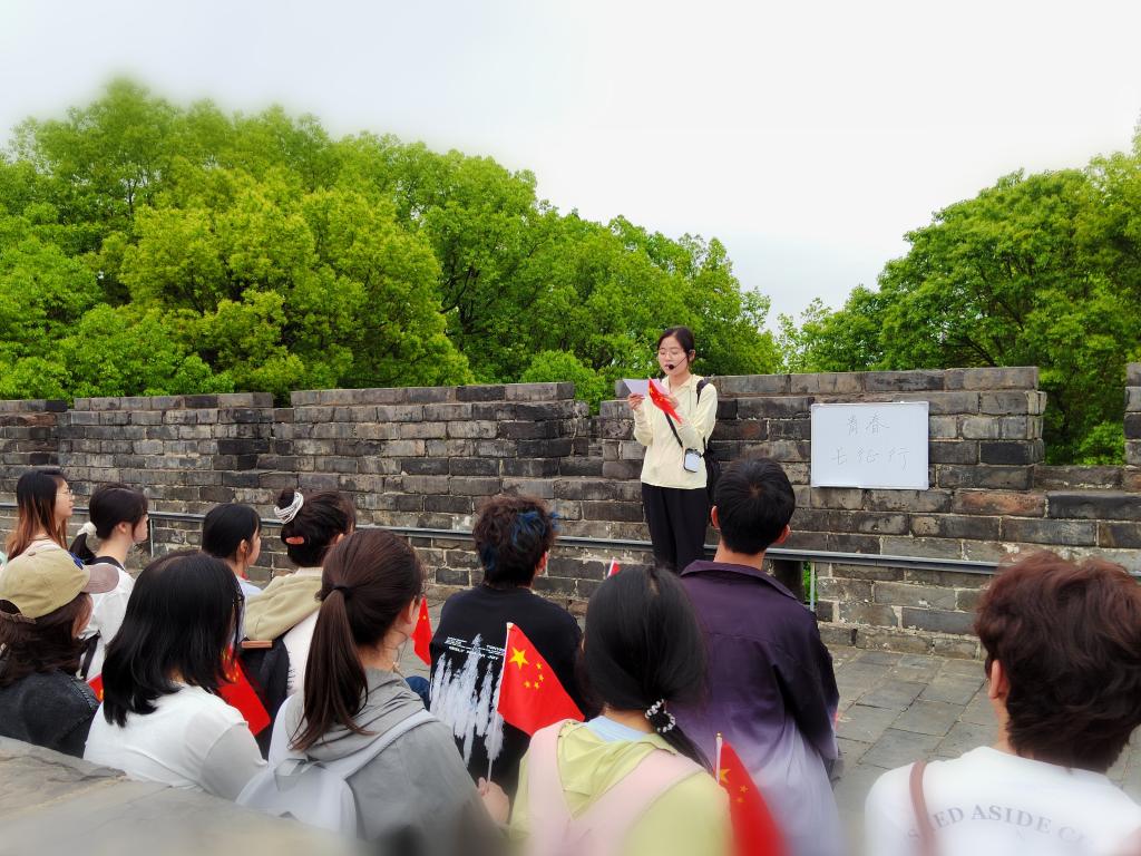 活动创新性地将12.5公里左右的古城墙环线与二万五千里长征相对应,沿途设置湘江战役、遵义会议、飞夺泸定桥等10个长征关键节点,开展红色历史与故事讲解。“长征是宣言书,长征是宣传队,长征是播种机”,团委书记李敏在出发前为学员们讲授微团课,讲解长征精神的内涵,强调其在新时代的重要意义。