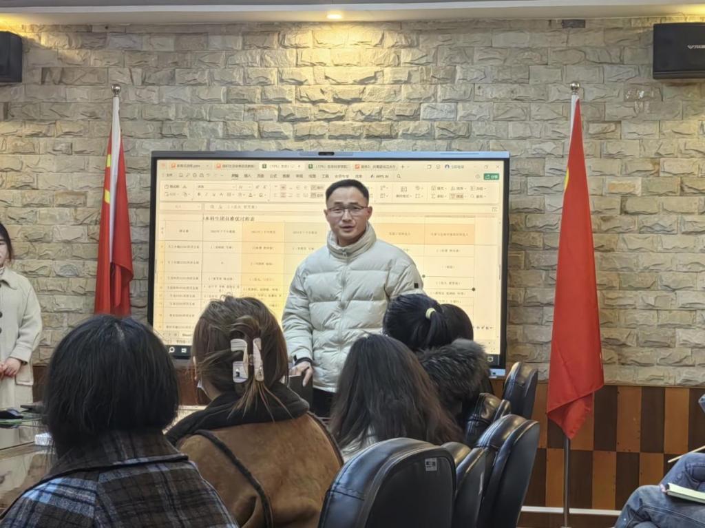 组织部干事齐飞扬就组织生活会的流程安排及团员教育评议的具体要求作了详细讲解。他强调,各团支部书记应以习近平新时代中国特色社会主义思想及党的二十届三中全会精神为指导,组织青年团员深入开展交流学习。此外,齐飞扬还明确了团员教育评议的具体流程与材料提交规范,指出评议工作应严格遵循“先个人总结,后民主投票”的顺序进行。