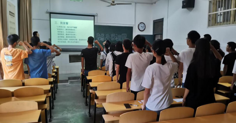 团会的最后,主持人带领全体同学宣誓,以己青春之名告白祖国。班团会结束由班长吉森进行总结发言,会议圆满结束。通过此次团会,同学们加强了对当前社会局势的认知,进一步明确了新时代我们长大莘莘学子为祖国发展为民族的复兴应尽的责任和义务。