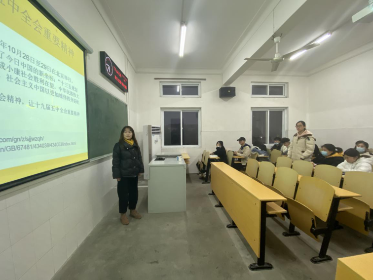 团会开始,由团副组织大家学习党的十九届五中全会重要精神,结合《关于在全校青年大学生中开展学习宣传贯彻党的十九届五中全会精神的通知》的要求,让其内化于心、外化于行。通过宣传及讲解,让大家明白了解我国重要时间节点和纪念日所传递的意义,并深深感受到其精神内涵。四、六级考试临近,团会上鼓励大家认真复习备考、诚信应考,遵守考试纪律,杜绝考试违纪、舞弊行为,自信且戒骄戒躁地参加考试,共同促进我校学风、校风建设。至此团会结束,团副组织成员共同参与第十季“青年大学习”网上主题团课学习,并对本次团会进行总结,团会结束。