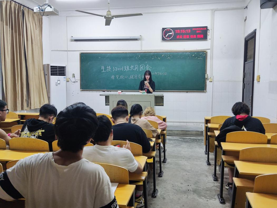 生技32001班于9月21日下午在二教205教室举行九月团会。团副全岩冰为此次团会策划人及主持人,生技32001班全体同学参与此次团会。