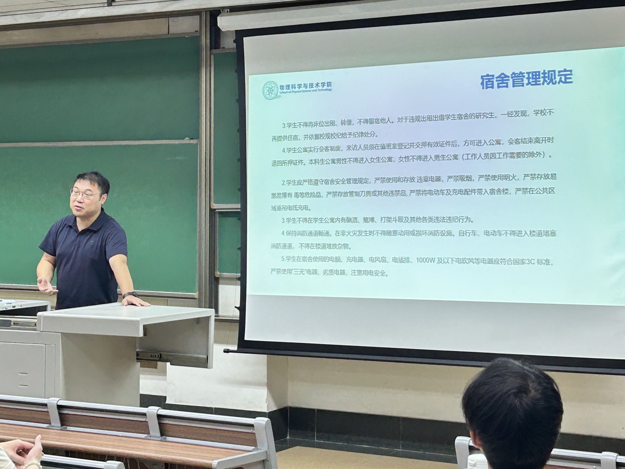 2025年9月11日晚,物理学院2025级博士班首次班会在九里校区J4523顺利召开,全体2025级博士研究生新生参加了本次班会,班会由博士研究生辅导员杨昊戬老师主持。此次班会主要围绕开学重点工作以及近期的新生入学教育工作展开。