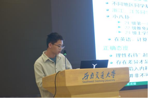 学业规划和学习方法方面,章成健以“接受差距、专注成长”为主题,分享了英语学习与专业课方法的独到见解;沈轩提出“通读课本+PPT巩固+独立作业”自学体系,并推荐AI辅助理解抽象概念;冯云鹏强调“课程学习是保研基础”,并系统梳理了竞赛分类与SRTP申报要点。