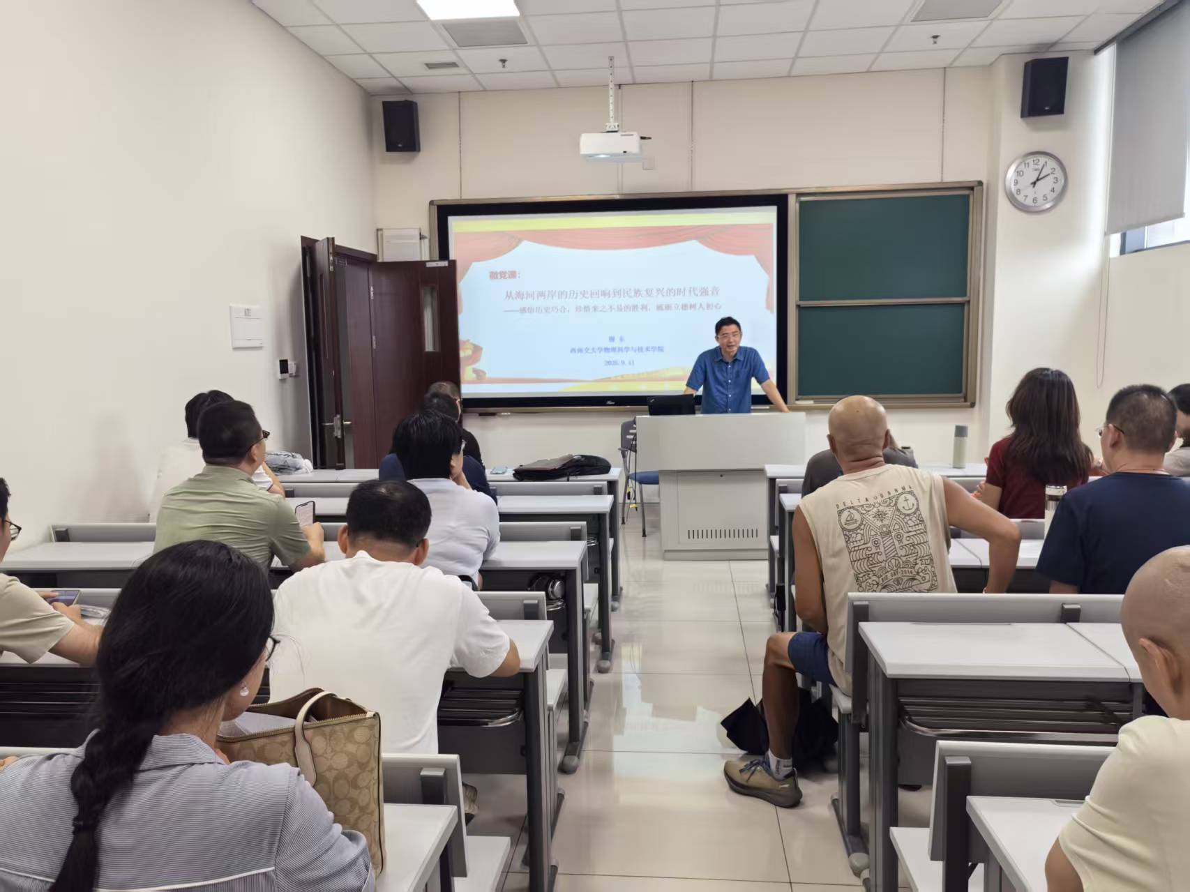 为提升党支部委员业务能力,向先进党支部和优秀党支部书记学习,2025年9月11日,学院在犀浦校区30601开展支部书记讲党课学习观摩活动,学院各党支部委员全部参加了物理系党支部主题党日活动,物理系党支部书记谢东主讲党课。