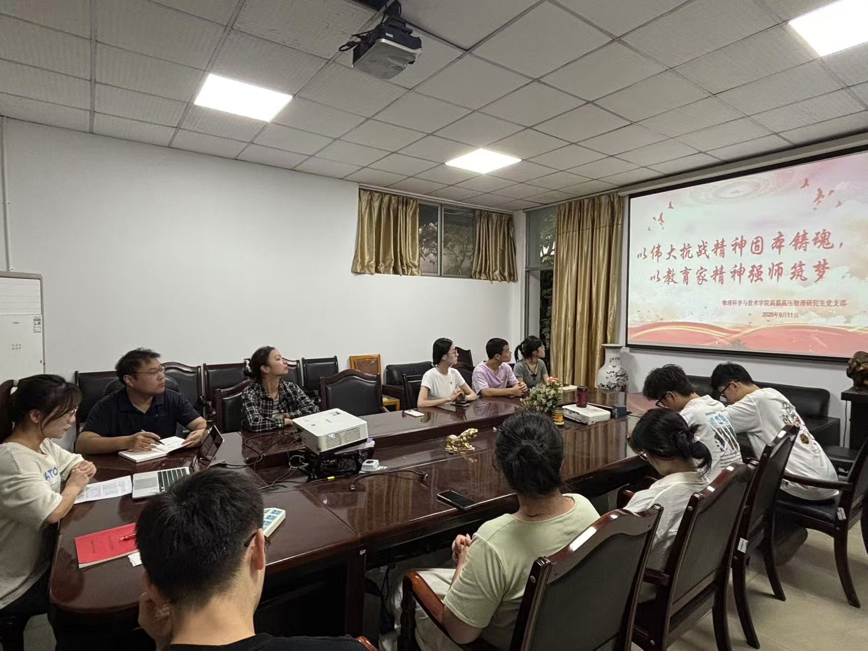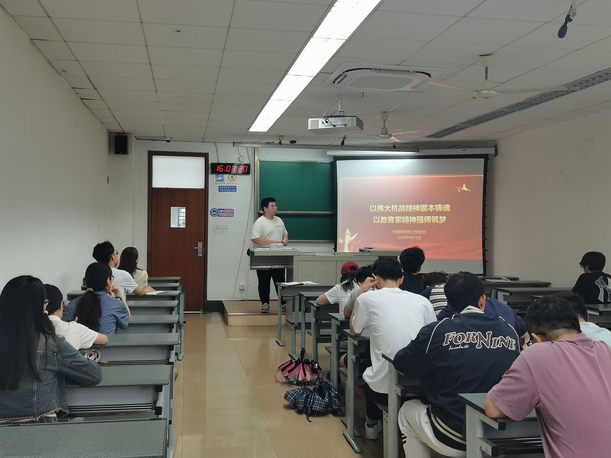 2025年9月11日-25日,学院学生党支部组织开展“以伟大抗战精神固本铸魂,以教育家精神强师筑梦”主题党日,学习习近平总书记在纪念中国人民抗日战争暨世界反法西斯战争胜利80周年大会上的重要讲话以及2025年全国“最美教师”先进事迹,与会党员交流了学习体会。各学生支部还组织开展了积极分子推优等相关事项。