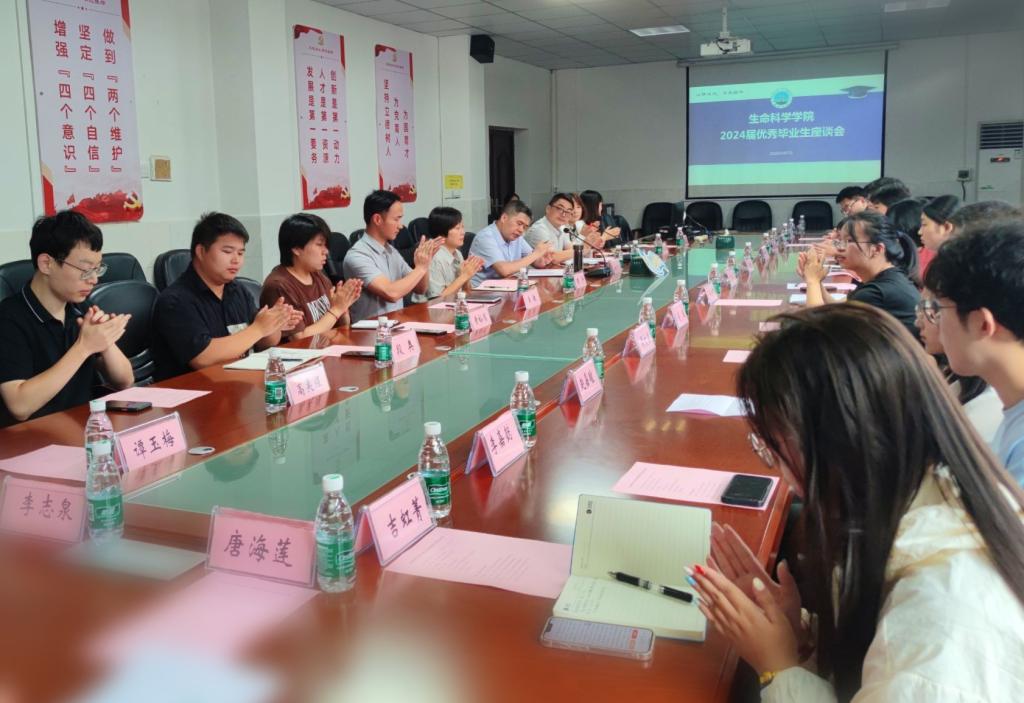 (通讯员 郭家惠 李敏)感恩母校情,共话未来路。6月7日上午8:30,生命科学学院在西校区一教217会议室召开2024届优秀毕业生座谈会。全体院领导、20位本、硕优秀毕业生代表齐聚一堂,共同回顾青春时光,分享成长感悟,展望未来之路。学院党委副书记万波主持会议。