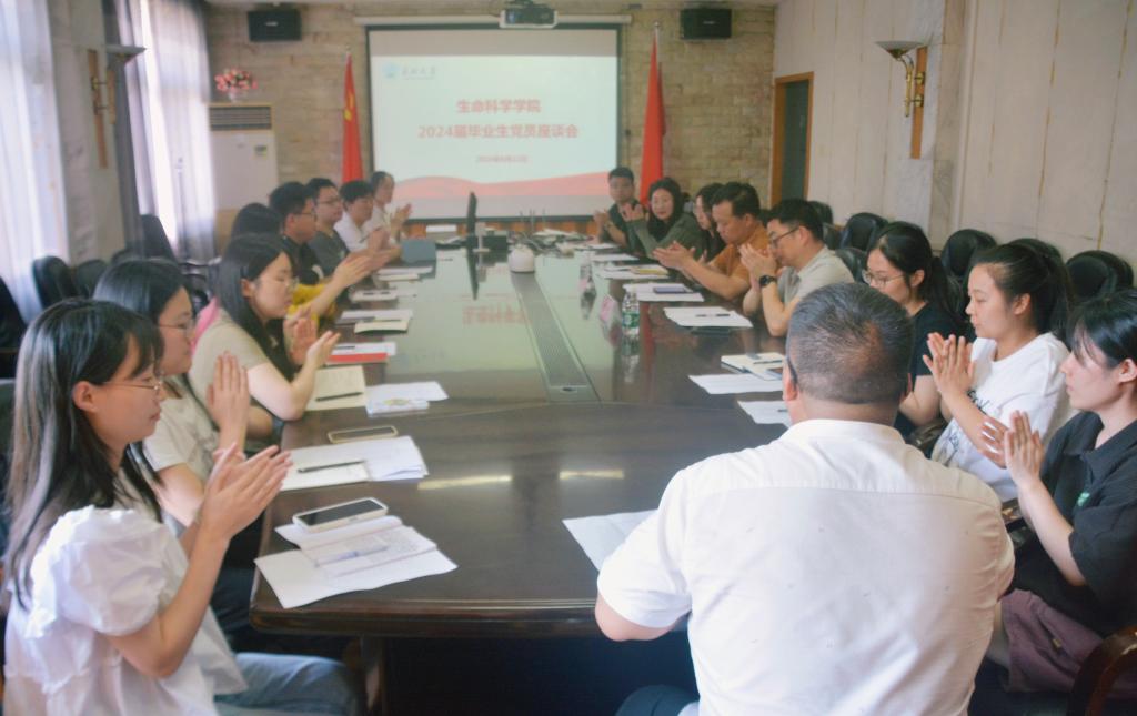 (通讯员 刘昕竹 贾雨濛)6月12日下午,生命科学学院在行政楼323会议召开2024届毕业生党员座谈会。党委书记谢作喜、党委副书记万波、辅导员贾雨濛与毕业生代表共抒情谊、共话成长、共谈未来。