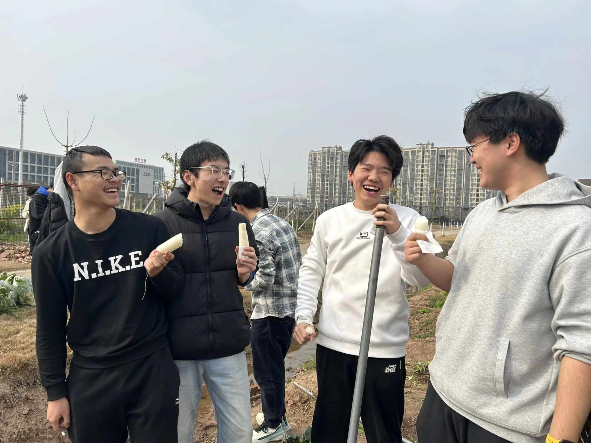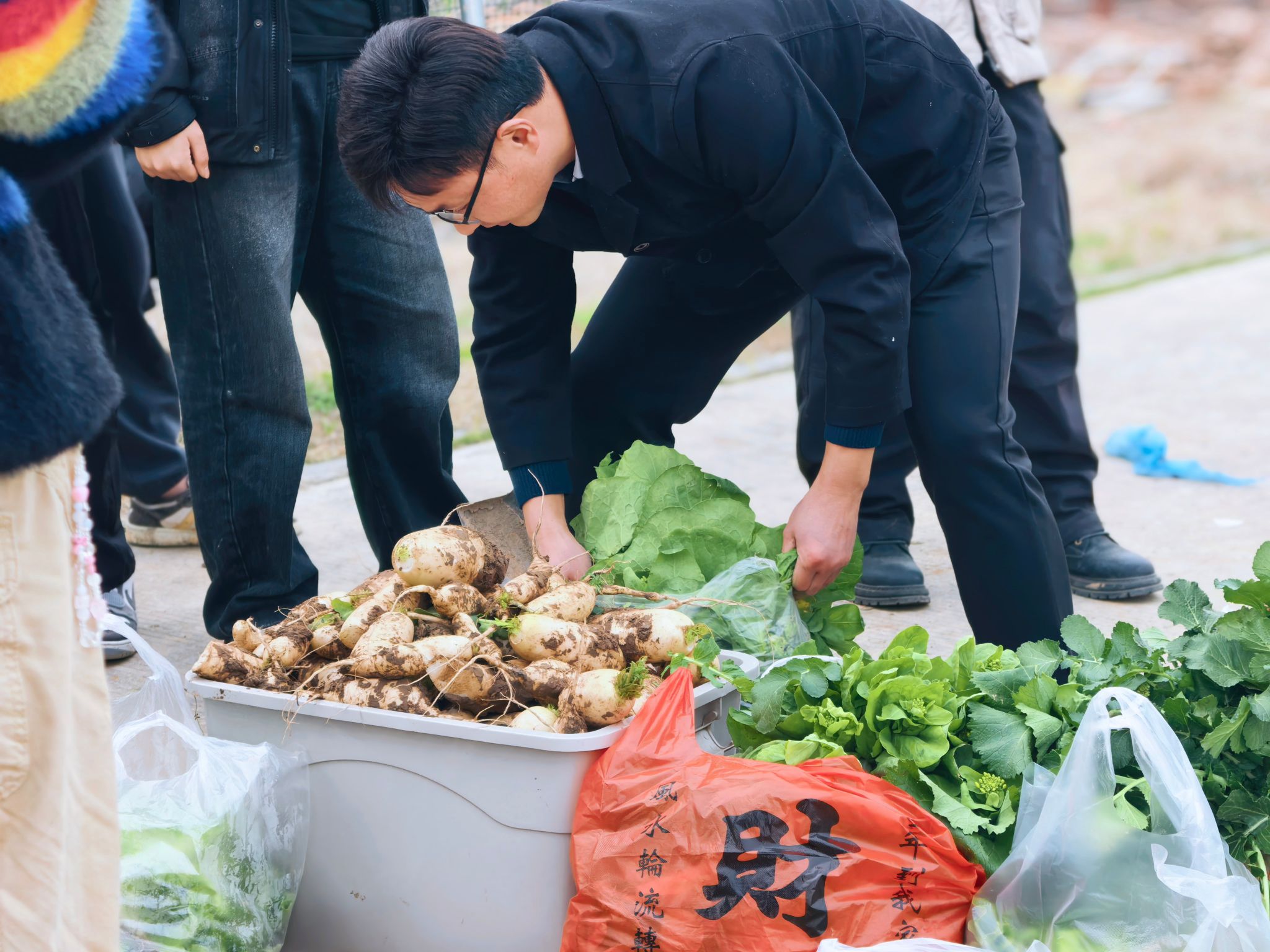 去年10月初,这批新生刚入学不久,便在学院的组织下,以班级为单位认领了各自的“责任田”,播下了萝卜、生菜、菠菜、小白菜等作物的种子。此后,翻土、施肥、浇水、除草……每一个环节都凝聚着同学们的汗水与期待。新学期伊始,菜苗不负众望,迎来了大丰收。尤其是萝卜,长得又大又壮,不少学生抱着刚拔出的、足有臂膀粗细的萝卜,兴奋地向同伴展示。