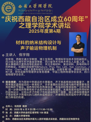 To celebrate the 60th anniversary of the founding of the Tibet Autonomous Region, the School of Science at Tibet University held its fourth academic forum of 2025 on June 9, 2025. Professor Ni Yuxiang from our school delivered an academic report titled "Nanostructure Design of Materials and the Physical Mechanisms of Phonon Transport" at this forum.